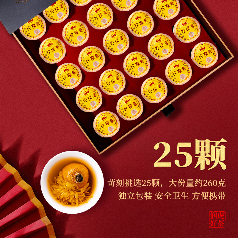 商品名称:润虎不忘初心柠檬菊红茶350克25颗礼盒装