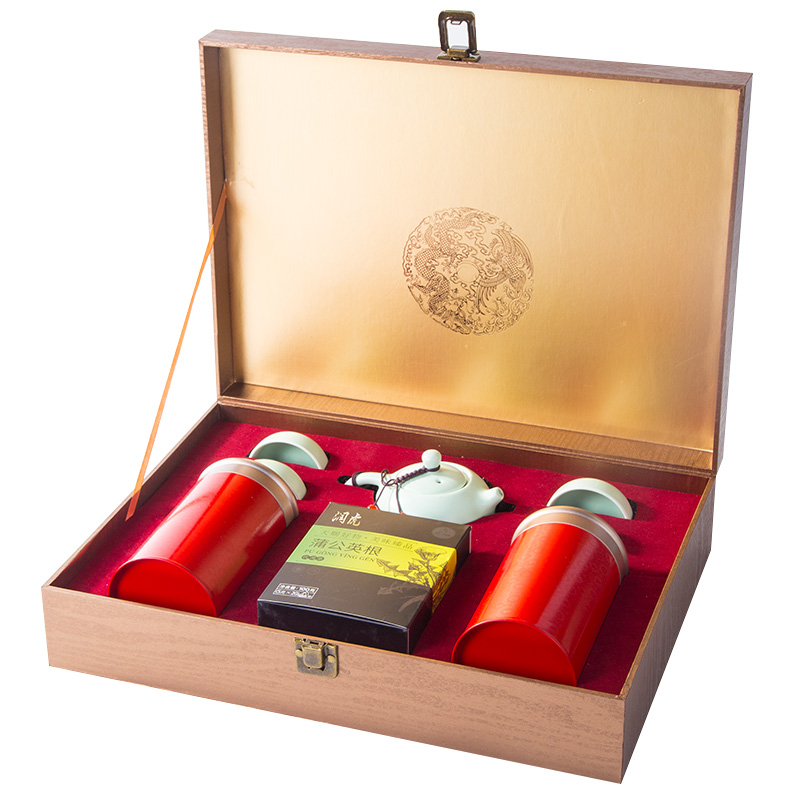 商品名称:润虎天尊龙品木纹茶礼盒(正山小种160克+蒲公英根100克)