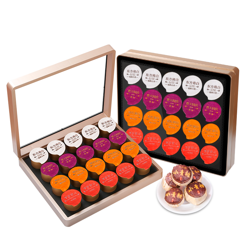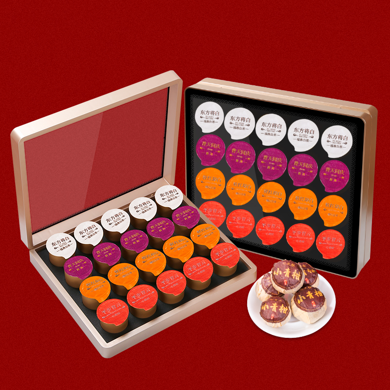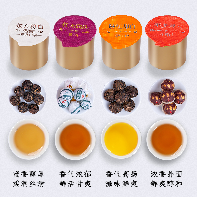 商品名称:润虎普洱熟茶小青柑橘红福鼎白茶龙珠组合160g(20罐)小罐茶叶礼盒
