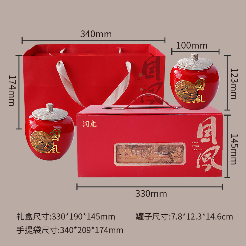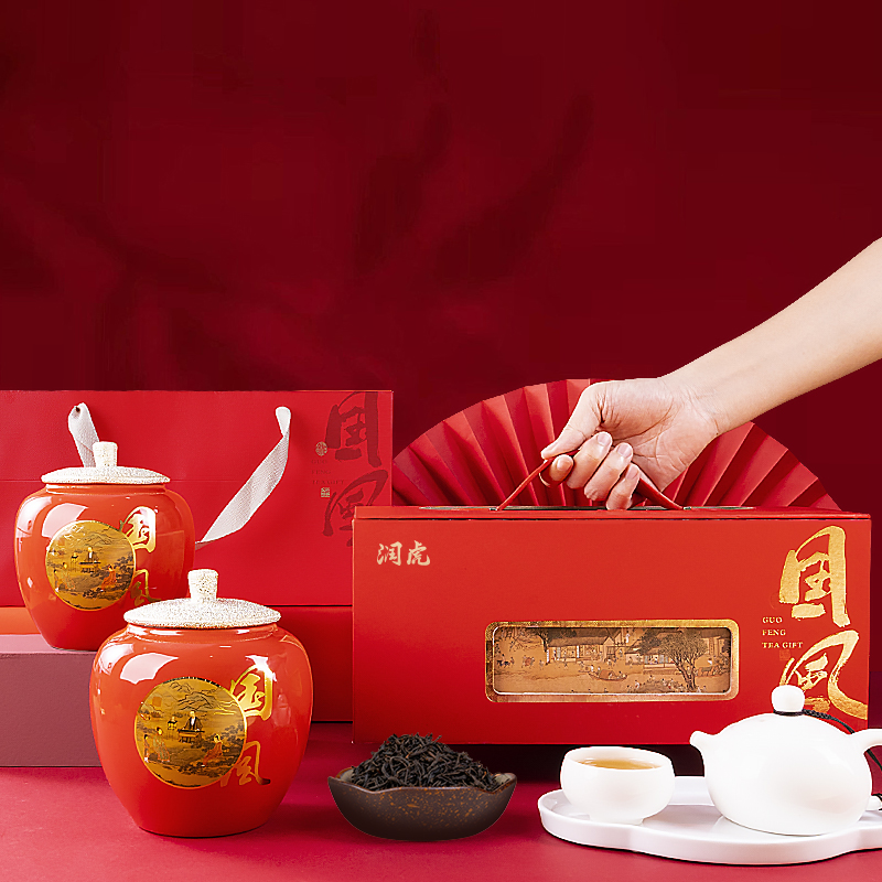商品名称:润虎鸿运华冠正山小种双瓷罐手提礼盒250克(50袋)