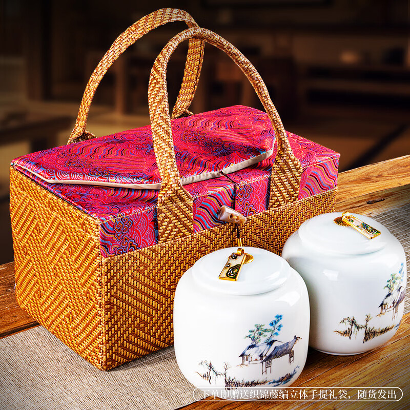 商品名称:润虎特级金骏眉武夷红茶250g(2罐)礼盒福冠如意藤编提花织锦