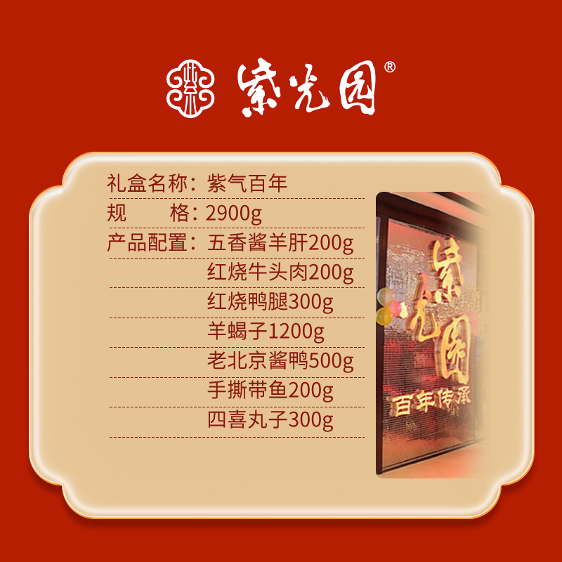 商品名称:紫光园紫气百年熟食礼盒2900g