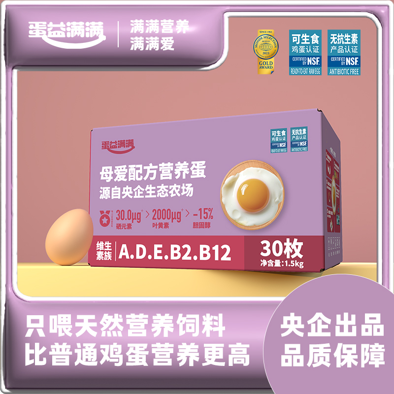 商品名称:蛋益满满母爱配方可生食富硒叶黄素二合一鸡蛋30枚约1.5kg