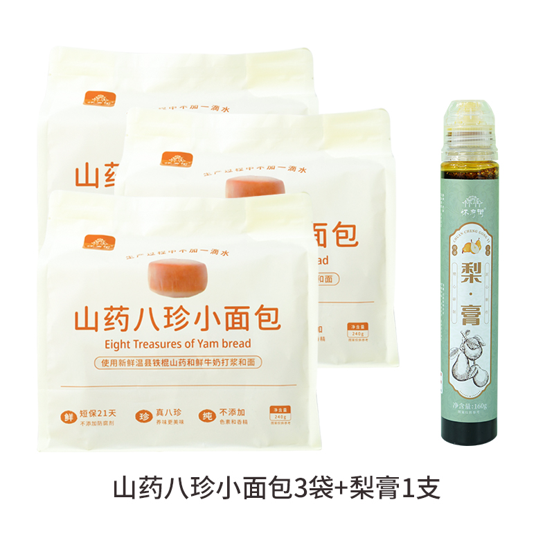 商品名称:怀府街山药八珍小面包240g*3袋(送160g梨膏)