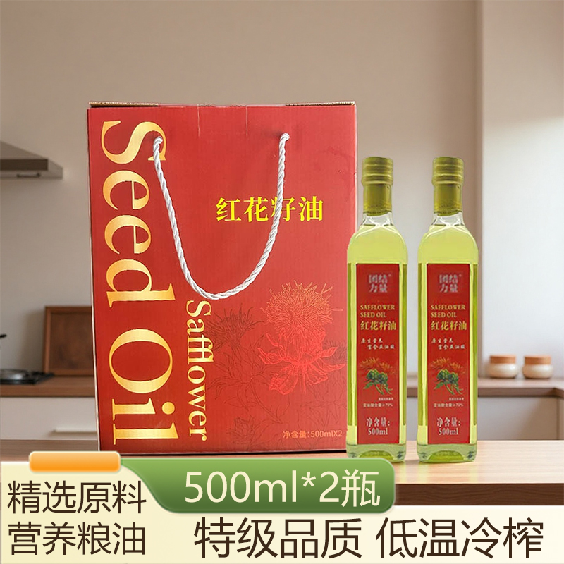 商品名称:平山县团结力量红花籽油礼盒500ml*2