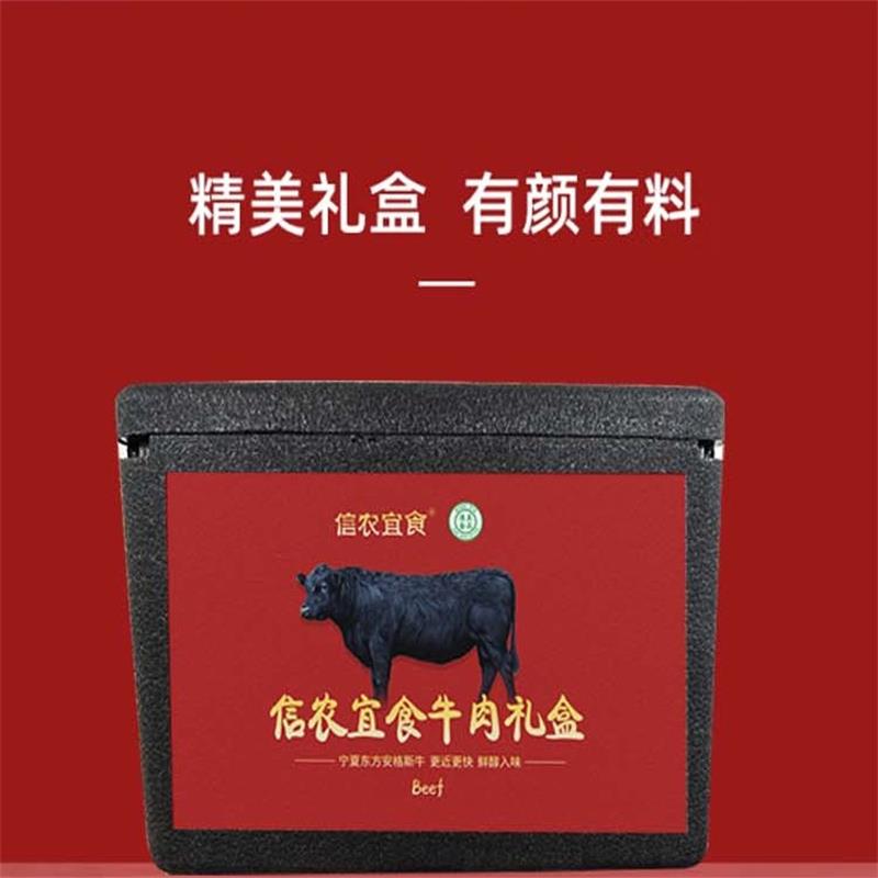 商品名称:信农宜食宁夏谷饲安格斯牛肉D款泡沫箱礼盒1.1kg