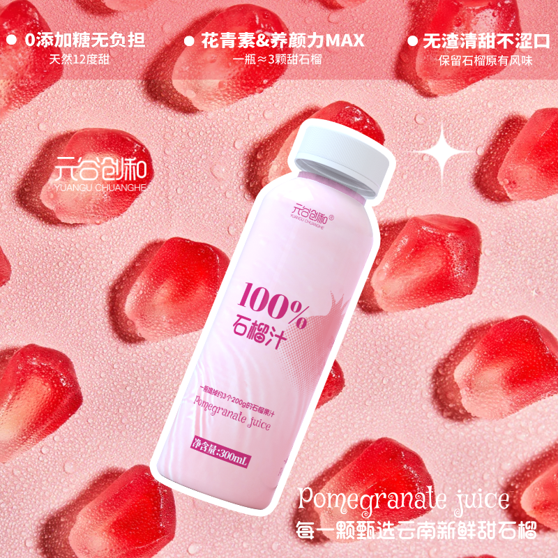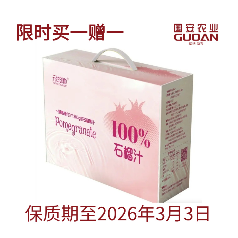 商品名称:【限时买一赠一】元谷创和云南百分百甜石榴汁300ml*8瓶*2箱