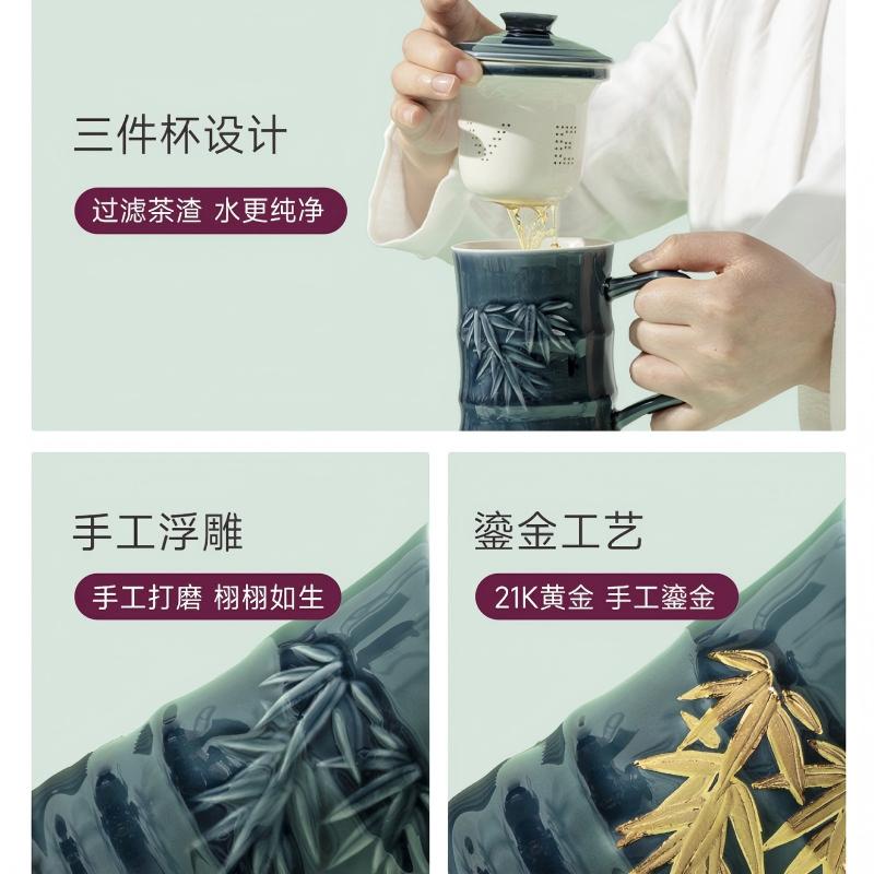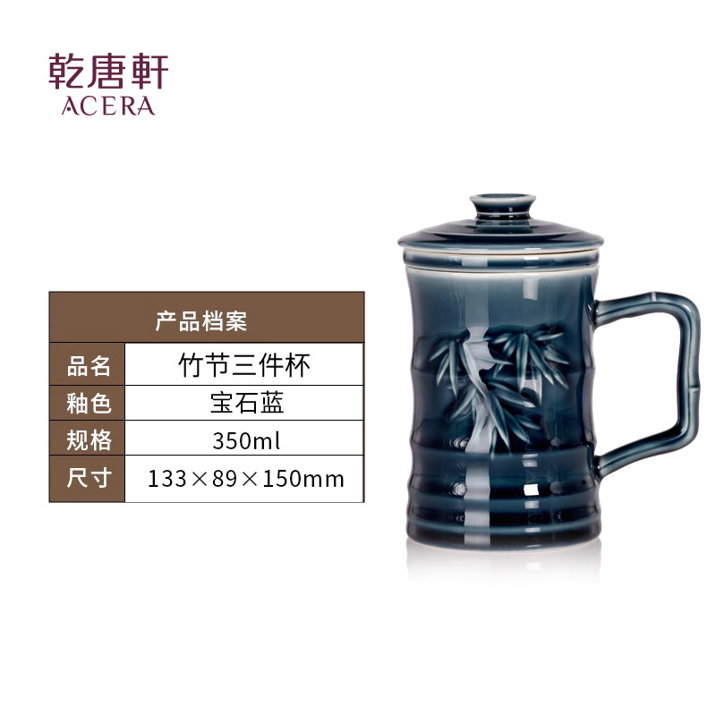 商品名称:乾唐轩活瓷竹节茶水分离陶瓷杯宝石蓝碧玺釉350ml