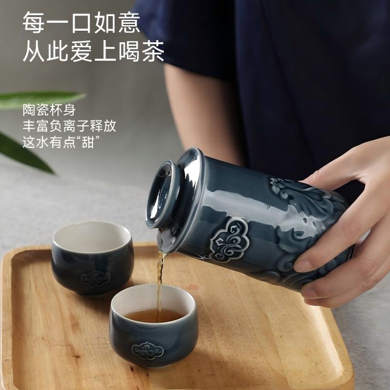 乾唐轩祥云如意茶具三件套宝石蓝鎏金款