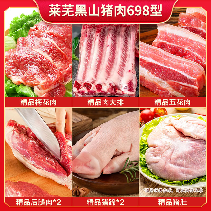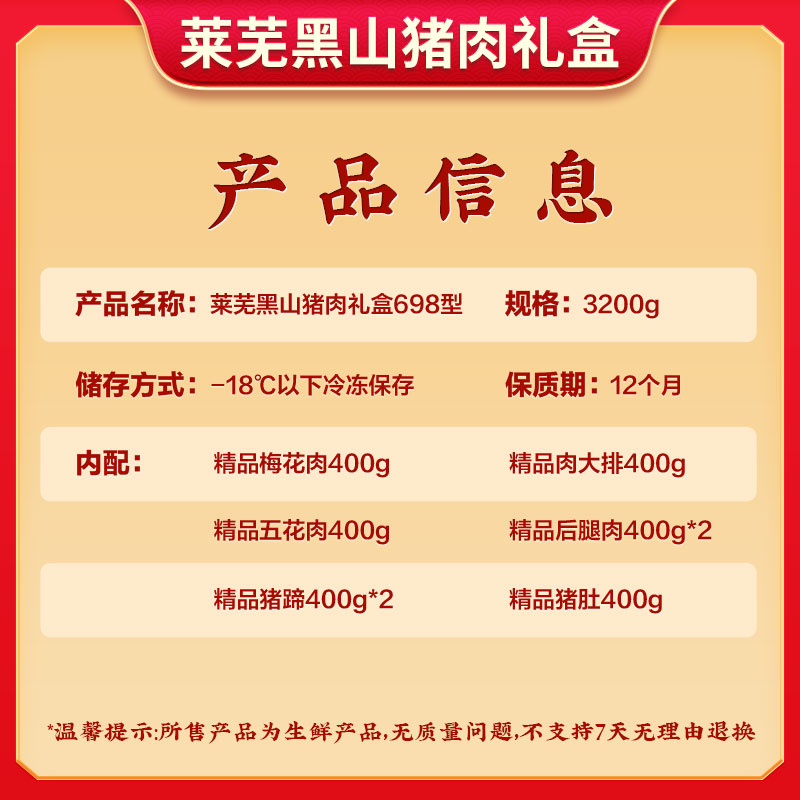 商品名称:伯纳德莱芜黑山猪肉礼盒698型3.2kg