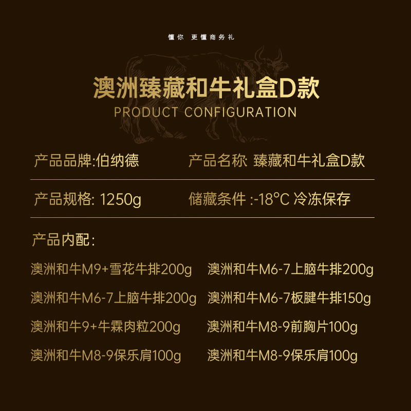 商品名称:澳洲和牛鼎级珍馐礼盒1598型D款1.25kg