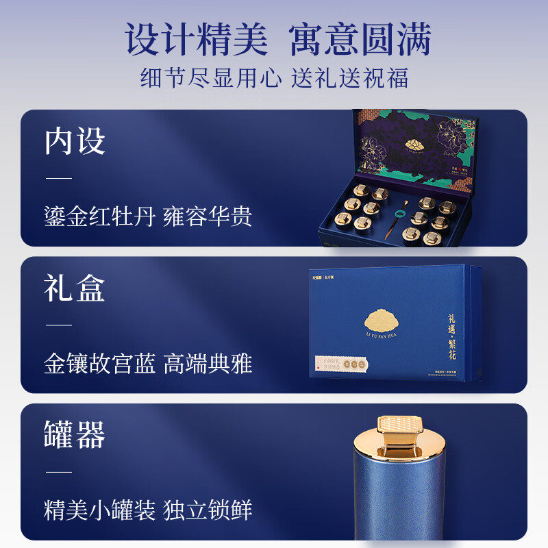 商品名称:杞里香12罐铁皮石斛礼盒100g礼遇繁花蓝色