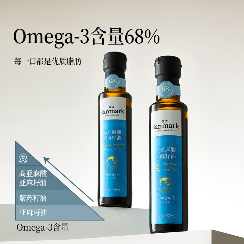 商品名称:晟麦(sanmark) 高亚麻酸亚麻籽油含Omega-3 250ml*1瓶
