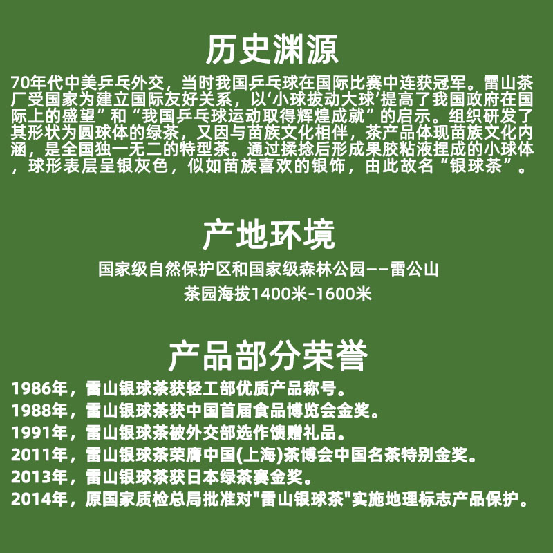 商品名称:雷公山 雷山银球茶100g一级袋装