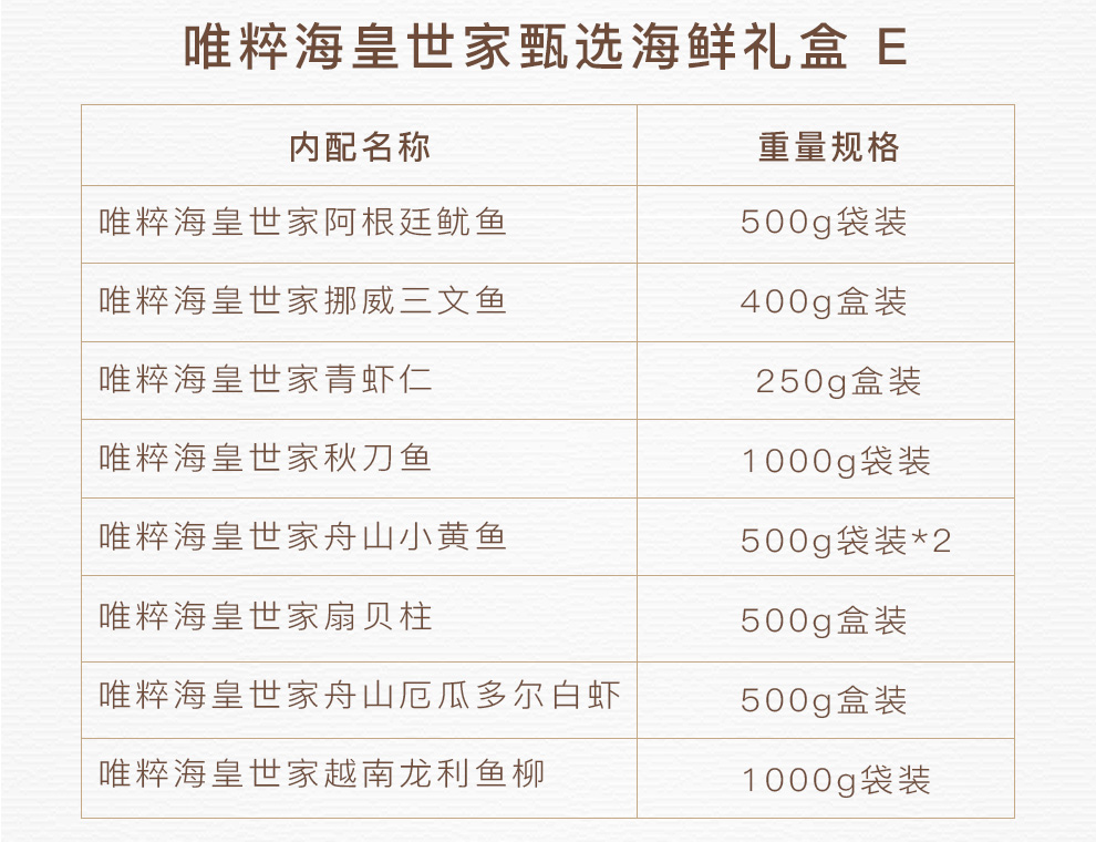 商品名称:唯粹海皇世家甄选海鲜礼盒 E